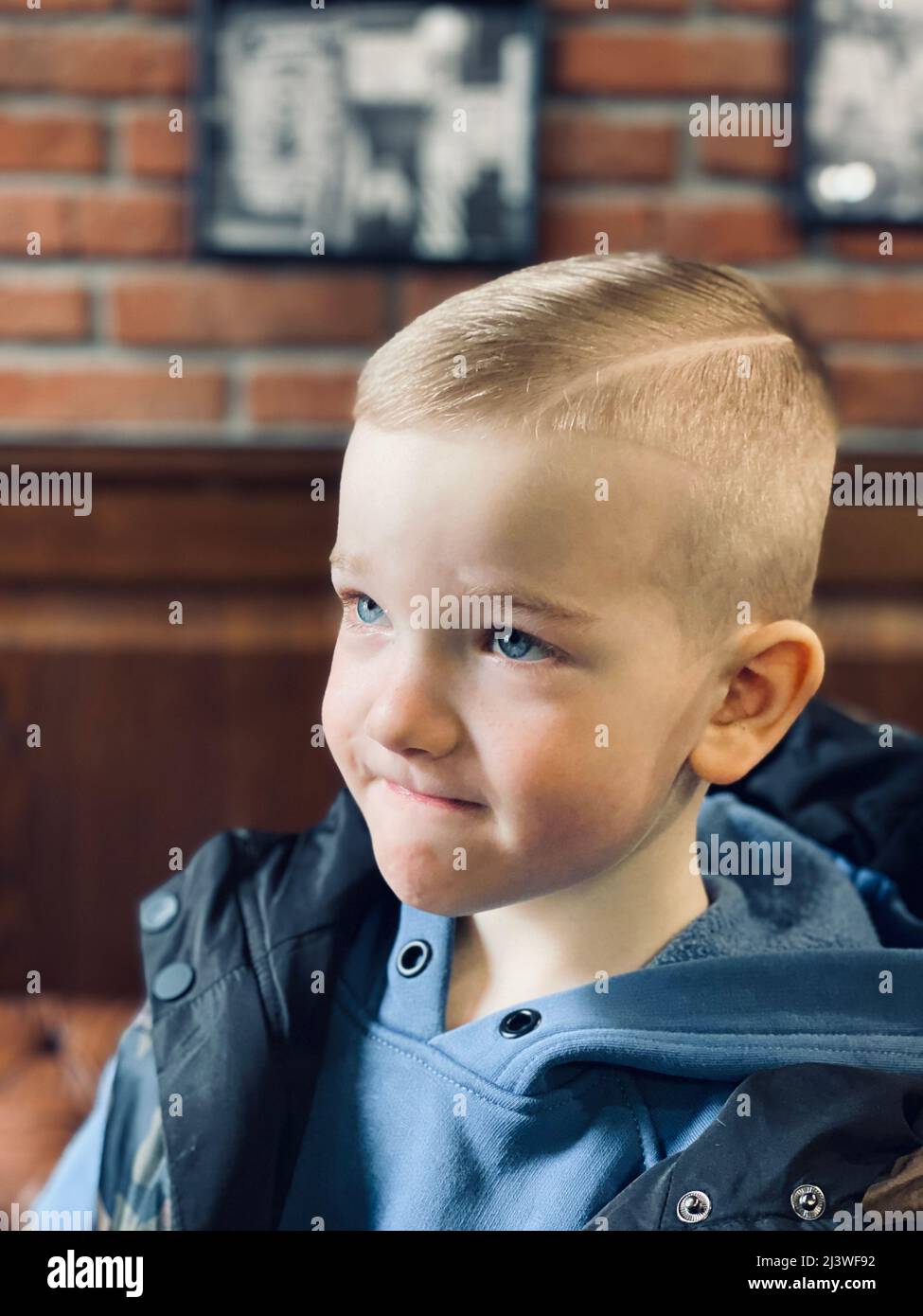 Little Boy After A Haircut In The Barbershop Stock Photo Alamy